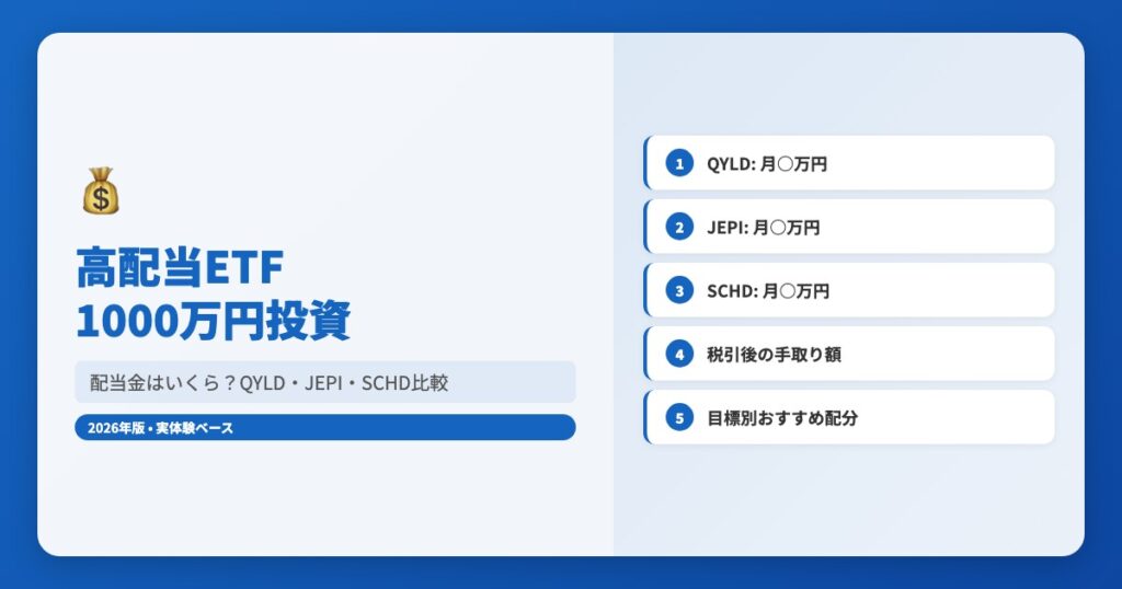 高配当ETF 1000万円投資したら配当金はいくら?QYLD・JEPI・SCHD比較シミュレーション【2026年版】