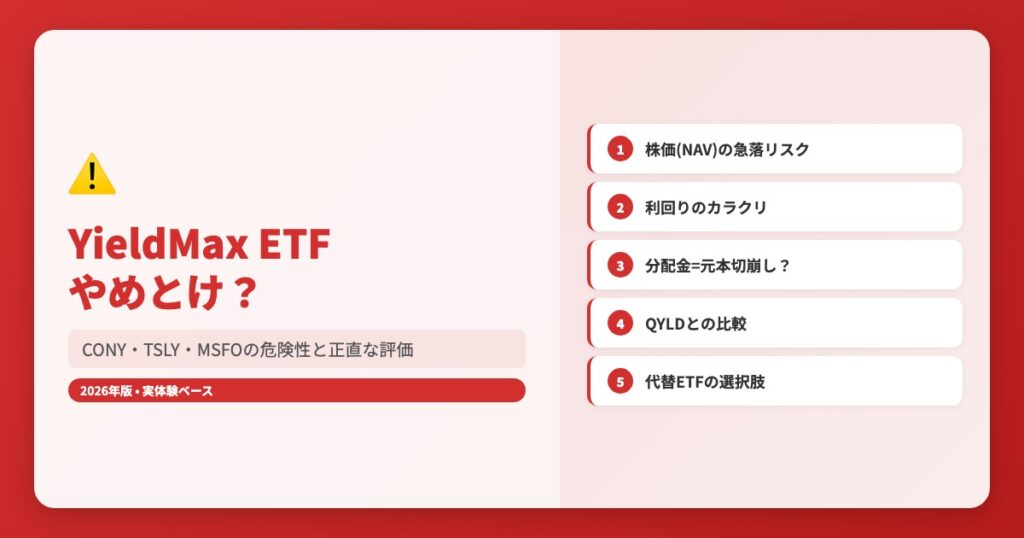 YieldMax ETFはやめとけ?CONY・TSLY・MSFOの危険性と正直な評価【2026年版】